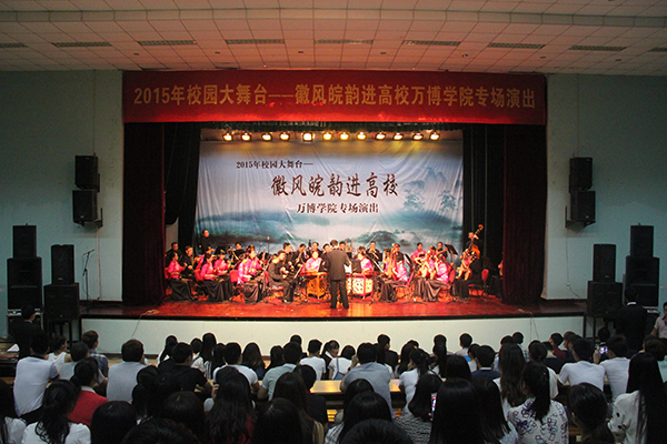 艺术大舞台,校园展风采。2015校园大舞台——徽风皖韵进高校活动万博学院专场演出于6月17日晚在学院报告厅拉开帷幕,晚会吸引了600余名师生到场观看,高水准的演出获得了师生的一致认可和好评。