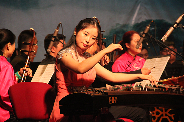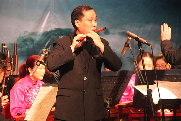 晚上7时整,演出在三声悠远绵长的击磬声中拉开帷幕,来自安徽乐团民族管弦乐团的艺术家们,用笛子、古筝、二胡等民族器乐演奏出一首首经典曲目。本场音乐会指挥由安徽乐团常任指挥徐宏担任。