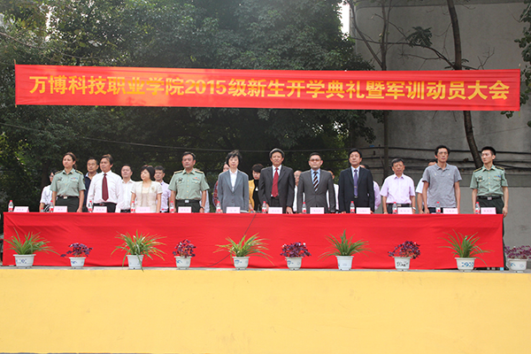 9月14日下午,我院2015级新生开学典礼暨军训动员大会在学院运动场隆重举行。院长江舒,省教育厅督导专员、院党委第一书记王士明,解放军电子工程学院学员一旅旅长荣之文,合肥育仁教育管理有限责任公司总经理、副院长陈文达,军训领导小组组长、副院长刘文慧,副院长刘瑞平,管理分院兼财经分院院长李德明,理工分院院长苏仕华,艺术分院副院长沈春雷,军训团团长李振东以及学院各部室、各分院、安学公司的负责人和2015级全体新生以及教官参加了大会。大会由军训领导小组副组长、军训团政委、学院学工部副部长杨晓芸主持。