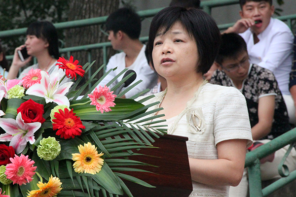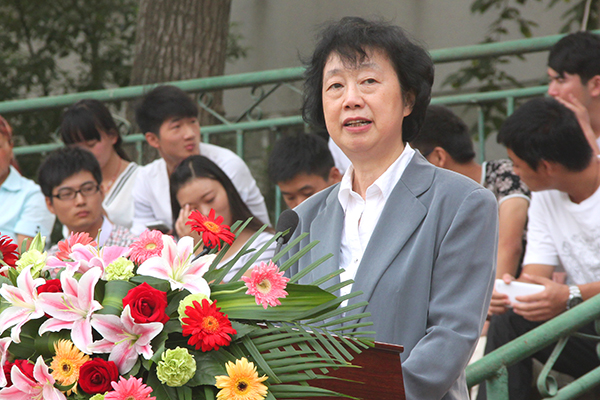 江舒院长在动员大会上发表讲话。她首先代表学院董事会、党政领导和全体师生员工,对2015级新同学表示热烈欢迎并向承训部队官兵表示衷心感谢。