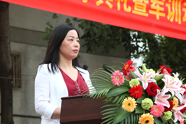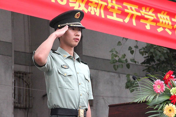 教官代表班晓辉在发言中表示,军训是大学生涯的第一课,在这堂特殊的课程中,教官与新生将互相学习,共同提高,一起提升国防观念,增强自律意识,强健精神体魄,并代表全体教官表示将在军训中树立良好形象、坚持严格施训、注重科学组训、搞好协调配合。