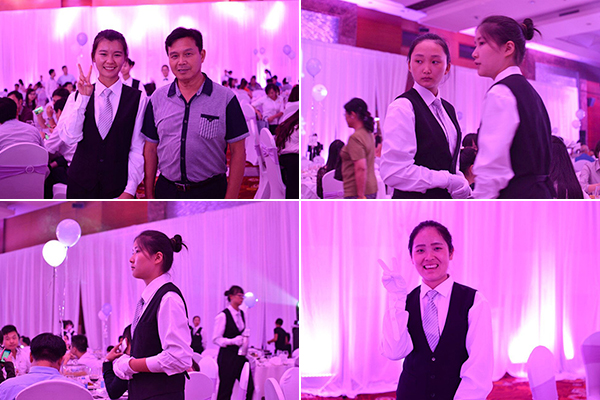 在这2个小时的实践中,对于我们的学生来说不仅享受着宴会的喜乐还有实践的兴奋。虽然过程很辛苦,但是学生们在实践中学会了很多,体验到了酒店管理的艺术性和人力资源合理利用的重要性,得到了很多无比宝贵的经验财富,而且对自身的专业有了更深层次的感悟,了解到自身的不足,总结了经验和教训,以后的学习将会更加明确自己努力的方向,不断进行自我增值,为以后规划自己的职业生涯垫定坚实的基础!(2014级旅游管理专业 苏慧琳)