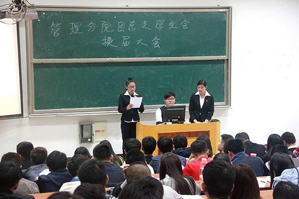 为尽快完善管理分院团总支学生会组织建设,推动各项工作的顺利进行,11月5日晚,管理分院团总支学生会换届大会在三号教学楼正式拉开帷幕。
