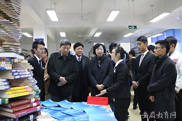 期间,该院院长江舒,督导专员、院党委第一书记王士明,合肥育仁教育管理有限责任公司总经理、学院副院长陈文达,学院副院长兼管理分院院长刘瑞平等院领导一行也来到图书展展厅,对同学们将展览的书籍用奇思妙想的创意展示出来的做法表示赞赏,详细询问了同学们对图书的要求和看法。最后,学院领导希望图书馆和院团委学生会要发挥好带头作用和引导作用,让更多的学生走进图书馆,多读书、读好书,为建设良好的校风、学风服务。