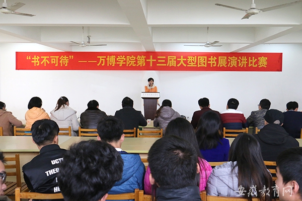 为配合此次图书展活动,还举行了主题为“书不可待”的主题演讲比赛,同学们热情参与,围绕演讲主题或引经据典、或发人深省,在讲台上侃侃而谈,号召同学们在青春时光一定要多读书、读好书,为将来打下坚实的基础,与在场观众产生共鸣。经过激烈角逐,最终由该院2015级连锁经营管理专业司雯雯同学夺得此次演讲比赛冠军,2015级国际商务专业余莎莎同学、2015级市场营销专业程艳丽同学获得比赛第二名,第三名则由2015级连锁经营管理专业黄永杰同学、2015级汽服自主(1)班孔阿影同学、2015级室内设计专业陈陌柳同学夺得。