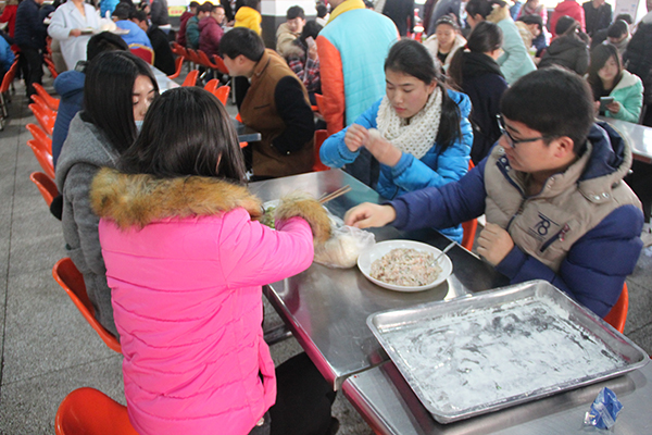 为了在寒冷的冬日将这份温暖传递到校园的每一个地方,经过一番忙碌后,院团委学生会的工作人员将煮熟的饺子一份份送给学院师生品尝。