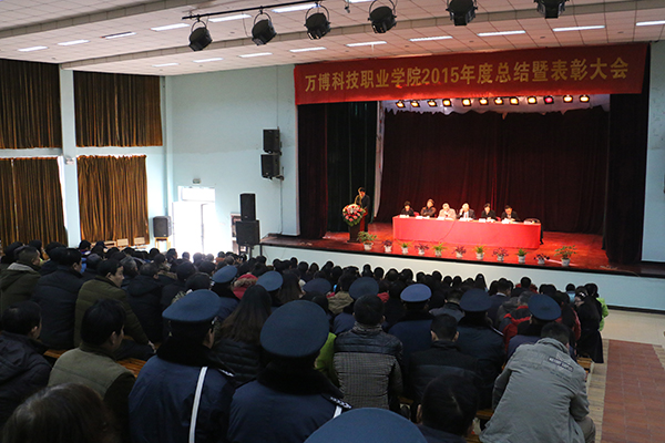 院长江舒在会上作2015年度工作总结报告。她指出,2015年是团结奋进的一年,也是浓墨重彩的一年,学院认真贯彻全国全省职业教育工作会议精神,坚持内涵式发展道路,以“培养高素质、技能型专门人才”为目标,以人才培养为根本,教学为中心,重视质量与特色,全面加强学院各方面建设。全院上下一心,脚踏实地,积微成大,改革创新,各项事业蓬勃发展。 江院长从几个方面对学院过去一年的工作进行了回顾和总结:一是共谋学院新发展,适应经济发展新常态。2015年,学院行政班子以程艺厅长、周华盛董事长的来访为契机,理清思路,适应新常态,担当新使命,进一步提高办学治校能力,充分发挥民办教育促繁荣、寻差异、扬个性的作用,积极推进教育教学改革,深入发展万博—莱佛士中外合作办学项目,不断提高人才培养质量,继续在办学理念、教育特色、人才培养模式等方面不断创新,着力培养综合素质高、创新创业能力强的应用型人才;二是进一步规范教学管理,大力推进教学改革与研究,不断提高教学质量。在教学改革方面,建立了由相关部门、各分院参加的学院教学工作例会制度,开展了实用英语基础课程改革试点工作,全面启动了人才培养方案修订工作,积极推行“订单式”教育培养模式,在课程体系建设与实训教学建设等方面制定了工学结合的人才培养方案。在制度建设方面,制定了包括教务、考务、学籍管理、实验教学等文件,并进行了修订、整合与完善,进一步规范了教学管理,促进了教学管理工作的科学化、规范化。此外,2015年度学院在教学管理、专业建设、课堂教学质量监控、教学研究工作等方面均取得了较大进展;三是进一步优化师资结构,提高教职员工综合素质。学院坚持人才强校战略,注重教师的引进、培养、稳定和激励,不断加强师资队伍建设,使之符合职业教育的需要,积极引导广大教师争做党和人民满意的,有理想信念、有道德情操、有扎实知识、有仁爱之心的“四有”好老师;四是人才培养质量提升,师生佳绩捷报频传。学院不断凝练办学特色,进一步增强学生的实践创新能力,积极推进国际化教学模式改革,不断提高各专业教学质量,学院在2015年度积极组织师生参加全国、省、市以及行业各类技能大赛,“以赛促教、以赛促学、以赛促改”,创新人才培养模式,均取得了优异的成绩,这是学院教育教学改革成效的最好验证;五是产教融合、协同育人,深化招生培养就业联动机制。学院与企业签订实习实训协议,积极组建市场营销、财务、国际商务综合实验室,进行专门顶岗实训,通过“工学结合”,创新人才培养模式,不断强化学生的职业技能。同时,学院以促进就业为导向,举办多场毕业生双选会,增加毕业生就业选择机会,2015年学院毕业生就业率达到96.36%。此外,学院积极鼓励学生参加创新创业大赛,施展创业才华,取得了很好的成绩;六是加强安全稳定工作,全面建设“平安校园”。学院始终高度重视校园安全稳定工作,坚持“安全第一、预防为主、综合治理”的安全方针和“夯基础、强教育、治隐患、保平安”的安全工作思路,切实维护校园安全稳定。七是资源使用效益提高,办学条件得到进一步改善。在董事会的领导下,学院财务严格预算制度,并对经费使用过程进行控制和管理,优化资源配置,加强资产管理,努力增收节支,持续加大实验实训设备的投入,提高资源使用效益,对财务活动的真实性、合法性和合理性进行监督;八是坚持立德树人,思政建设和校园文化活动深入人心。2015年,学院以党的群众路线教育实践活动为契机,强化自身建设,切实加强和改进了党建和宣传思想工作。