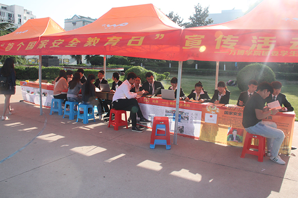 在活动期间,通过宣传标语、校园广播电台、学院微信公众号(wbcedu)、校园网、校内设立咨询点、宣传栏等各种形式使全体师生都能了解国家安全教育日的来历以及重要性,懂得“国安民安家才安,有你有我才有国安”的道理。同时,各班周密安排,精心组织了主题班会,深入学习《国家安全法》、《反恐怖主义法》等法律,增强师生国家安全意识,帮助广大师生真正做到时时刻刻牢记国家安全,促使安全知识入脑入心。