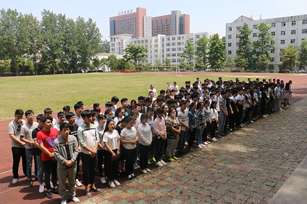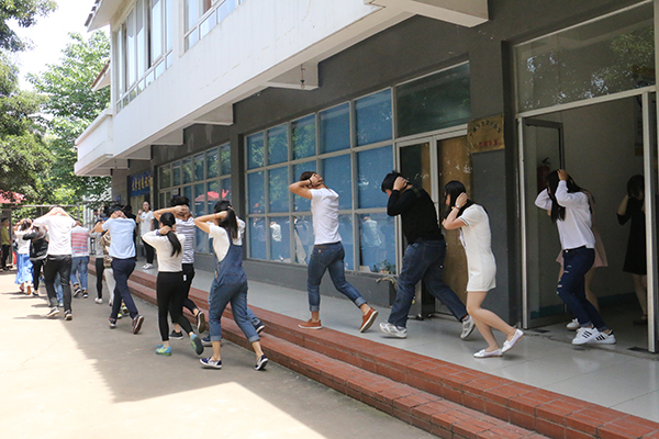 随着警报声响起,同学们迅速有序跑出教室,向运动场集结......5月12日中午,为纪念“5.12”汶川特大地震8周年,增强师生的安全防范意识,熟练掌握逃离灾难现场和简单自救的基本方法,我院团委开展了地震避险紧急逃生演练活动。