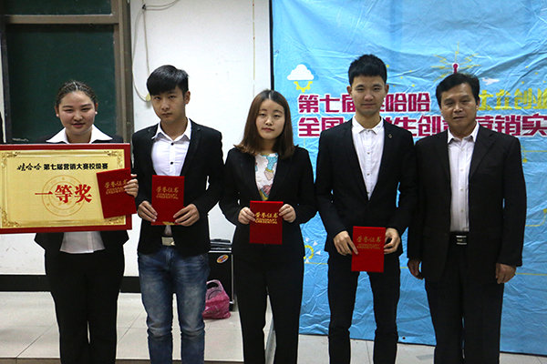 为期一个月的第七届哇哈哈营销大赛校级赛圆满落下帷幕,6月3日中午,院团委学生会学习部在3102教室隆重举行了第七届娃哈哈营销大赛校级赛的颁奖典礼。娃哈哈集团安徽公司总经理陈晓春、财经分院院长李德明教授、学院就业指导中心张辉老师应邀参加本次颁奖典礼。