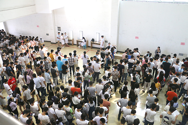 早上8点开始,新生们就按照院系、班级依次序轮流进行视力、五官科、内科、身高体重和测血压等各个项目的体检。体检中,医务人员认真、仔细为新生进行检查,学院将根据健康体检结果,认真填写报告单,建立每位新生的健康档案。