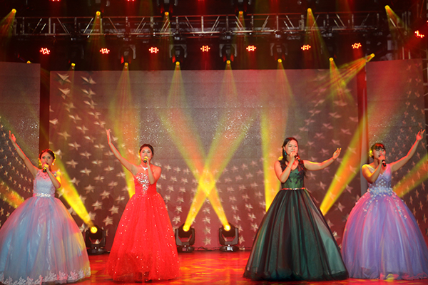 男女四重唱《共筑中国梦》,表达了中华儿女的共同期盼,也把晚会推向了一个小高潮;《串烧—迈克杰克逊》同学的潇洒舞技引得师生连连叫好。歌舞表演《生活是这样的美好》欢快的舞蹈、悦耳的旋律更是让在场观众陶醉其中;女声独唱《一杯美酒》,歌颂了美好生活,表达了我们新时代大学生充满希望而生机勃勃的精彩生活。舞蹈《中国梦》将晚会再一次推向高潮,伴随着歌舞,本届迎新晚会圆满落下帷幕。莅临本次晚会领导与嘉宾与演出人员合影留念。