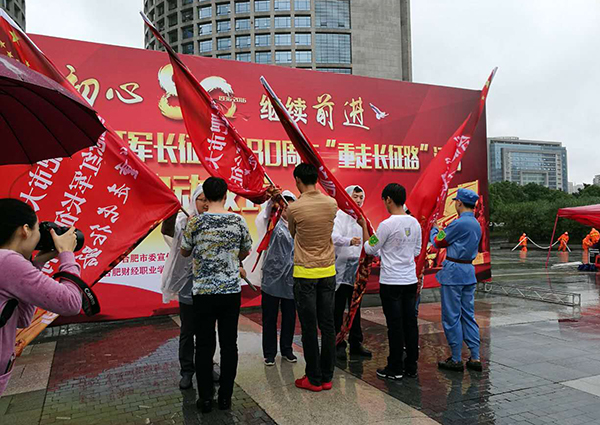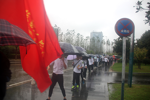 “牢记红军长征历史,弘扬红军长征精神。” 此次“重走长征路”活动从政务中心广场出发,终点是滨湖区渡江纪念馆,全程长达22公里,团市委各直属院校团组织及老师约400人参加,我院共40名同学参加,由院团委老师洪丽带队,设置为三个班,设有班长、副班长、卫生员、通信员、文书等,分别负责班内的统领、医疗、通信等事宜。另设有纠察班骑车跟随,在行进过程中,监督参与人员不乘坐交通工具,不违反交通规则。