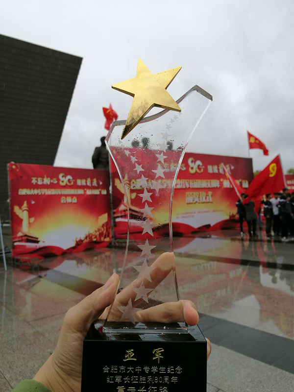 此次活动主题为“不忘初心 继续前进”。旨在引领全市大学生通过重走长征路,回顾党领导、建设、改革的光辉历程,缅怀革命先辈的丰功伟绩,发掘长征精神的历史内涵和时代价值,传承和弘扬以爱国主义为核心的民族精神,培育和践行社会主义核心价值观。活动为我们展示了新时代大学生不畏艰难,砥砺前行的精神。薪火相传无穷尽,革命精神励后人,红色传承在合肥未来的道路上会越走越广。(洪丽)