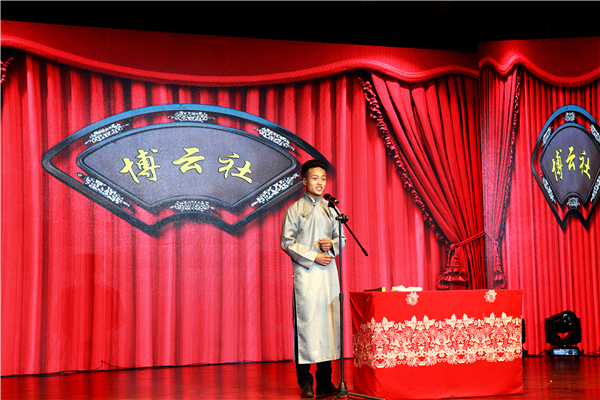 由中科大同学带来的摸扎特经典曲目《第13号小夜曲k525》四重奏拉开晚会序幕,委婉动听的琴声回荡在报告厅的每一个角落。随后,精彩节目轮番上阵,你方唱罢我登场。一首由安医大同学带来的《将军令》将晚会气氛点燃,劲歌热舞、灯光璀璨;风趣幽默的相声表演,安建大同学的一逗一捧,令观众啼笑皆非;由我院艺术分院的同学们带来的舞蹈《茉莉花》,婀娜的身姿,华丽的服装更是给师生留下了深刻印象;由安农大同学带来的小品《又说那话》,其贴近生活的情境,夸张逗趣的表演,笑料百出的包袱,让现场高潮迭起,掌声雷动;已毕业校友此次返校为母校师生带来了精彩表演,一首有别于中国传统口技表演的《B-box》,用嘴巴模拟出的音效和节奏令观众折服;由安建大同学带来的小品笑中带泪,给观众讲述了当今时代对“孝”的理解;将爱情融入舞蹈,用舞蹈讲述故事,由万博学院街舞协会带来的街舞表演告诫同学们珍惜身边的一切,别等到失去的那一天才追悔莫及;相声《我这一辈子》和舞蹈《惊鸿舞》一静一动,同样表现出万博学子的多才多艺,将本次晚会再次推向高潮。