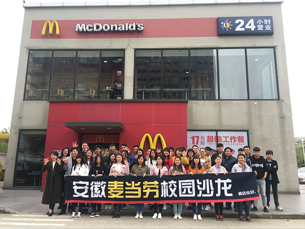 为进一步提高我院相关专业学生的实践能力,近日,由我院财经分院院长李德明教授和辅导员史成傲带队,带领我院2015级连锁经营管理专业同学赴校企合作单位安徽麦当劳得来速汽车餐厅参加校园沙龙活动。