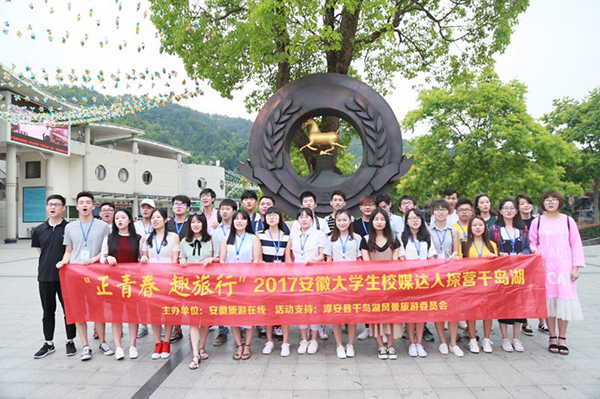 仰望山川天色,挽扶碧水清风。近日,由安徽旅游在线主办,淳安县千岛湖风景旅游委员会、安徽大学生旅游俱乐部、安徽旅游微媒体联盟、各高校团委、记者团、学生会等协办的“正青春 趣旅行”2017安徽大学生校媒达人探营千岛湖顺利举行。我院学生记者杨明威代表大学生记者团应邀和全省多所高校校媒代表共同参观了千岛湖风光。
