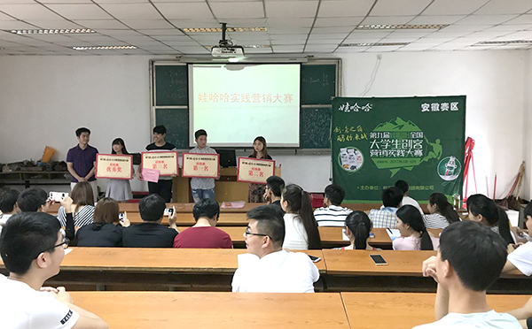 6月12日,第九届娃哈哈全国大学生创客营销实践大赛校级赛经过2个月的激烈比拼后圆满落下帷幕,并在3101教室顺利举行了颁奖仪式。哇哈哈安徽区域经理陈晓春、财经分院院长李德明教授以及比赛指导老师盛婷婷和史成傲老师出席了颁奖仪式。