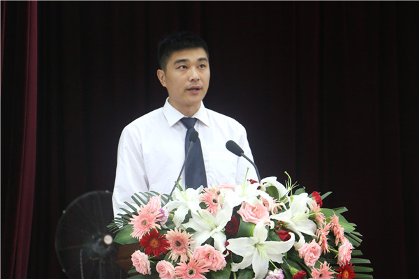 杨东至老师作为教师代表在典礼上发言,代表全体教师向全体毕业生表示祝贺。他表示,三年时光,见证了同学们从大一的懵懂青涩到毕业时的成熟稳重,希望同学们今后能无愧于自己,无愧于生活,无愧于时代赋予我们的神圣使命。