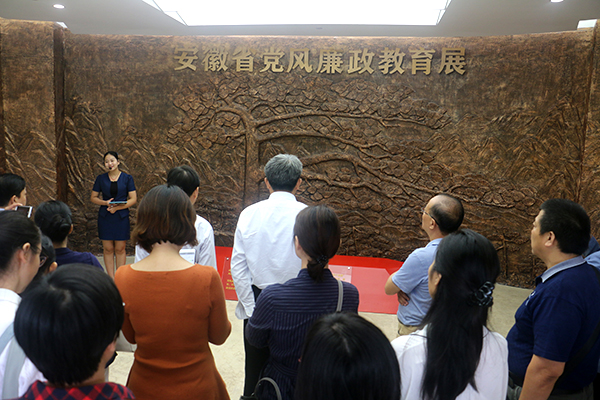 在安徽省党风廉政教育基地,大家参观了“光辉历程”“时代楷模”“警示教育”“清风扬帆”四个版块的廉洁教育展览,重点了解了党和国家领导人关于党风廉政建设方面的重要决策、重大事件和探索实践;集中宣传了焦裕禄、杨善洲、沈浩等一大批新时期廉政楷模的先进事迹以及近期一些安徽省内贪污腐败反面典型案例,特别是对陈树隆、杨振超、周春雨等腐败案件的深刻剖析,从不同侧面揭示了他们思想蜕变、贪欲膨胀、背离宗旨、以权谋私,走上严重违纪违法道路的堕落轨迹。