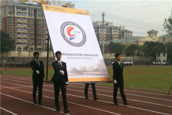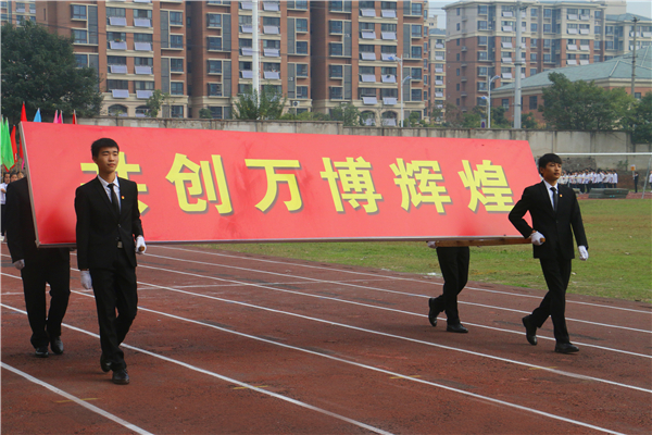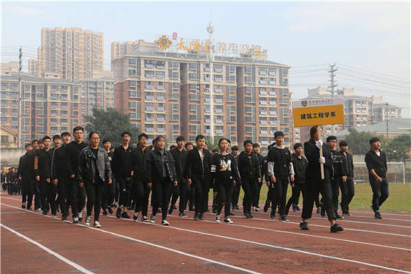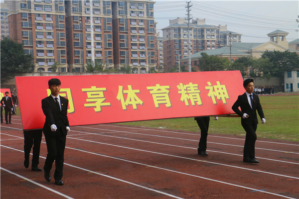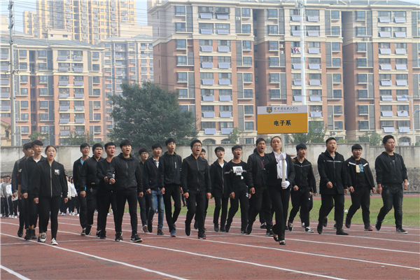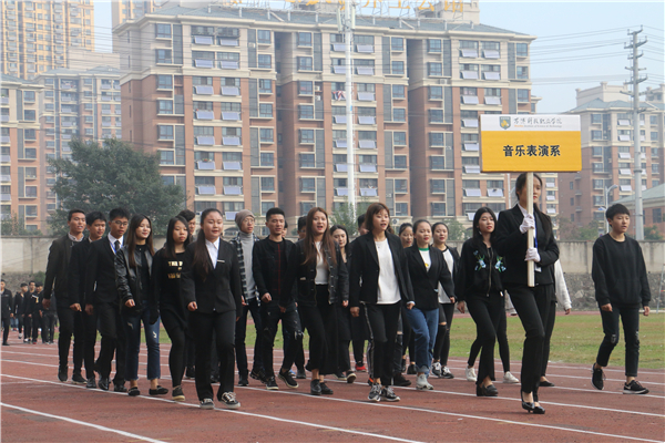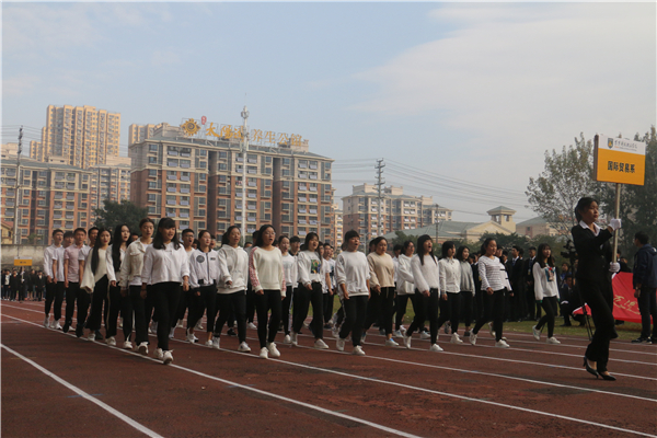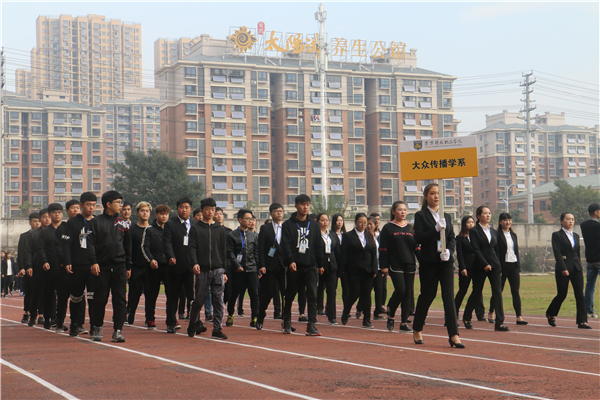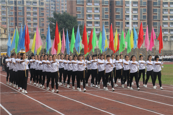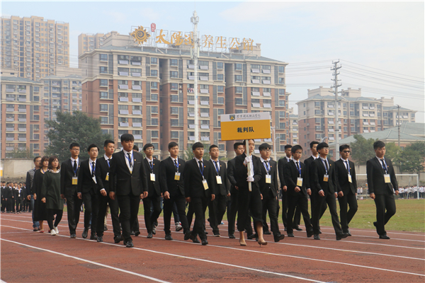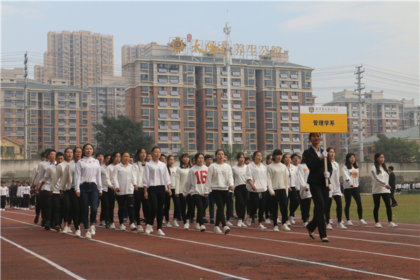 在欢快、激昂的运动员进行曲中,以国旗、校旗、运动会会徽、会标方阵为先导,彩旗方阵、裁判员代表方阵、各系运动员代表方阵、教职工方阵等依次以饱满的热情和整齐的步伐有序入场。