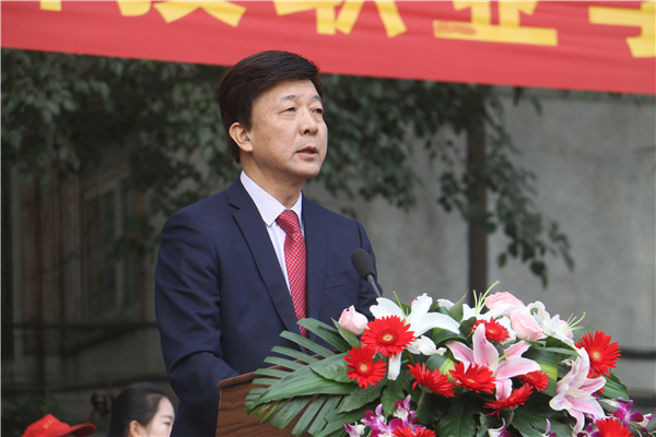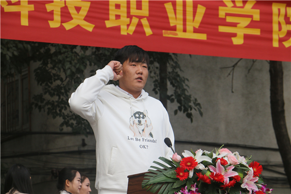 院长王士明致开幕词。王院长代表学院党政领导祝贺第九届田径运动会隆重举行,向承办本届运动会的组委会及全体工作人员表示衷心感谢,并向全体运动员、裁判员表示诚挚的问候。王院长表示,体育工作是学院教育教学工作的重要内容,也是学校精神文明和校园文化建设的重要载体,倡导同学们 “走下网络、走出宿舍、走向操场”,积极参加体育锻炼,培养勇敢顽强的性格、竞争意识、团结协作和集体主义精神。王院长强调,一年一度的运动会是我院重大体育盛事,既是对我院体育教学成果的检验,也是参赛师生精神风貌的集中展示,为参赛师生搭建了交流学习、增进友谊、共同提高与进步的大舞台。