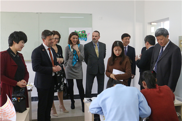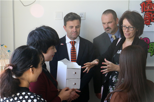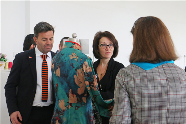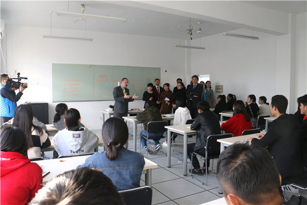 Judith Lamie副校长一行首先参观了我院中外合作办学项目,对我院服装与服饰设计、旅游管理、视觉传播设计与制作专业进行了深入了解,在课堂上与我院师生进行了热烈的互动和友好交流,对我院学生的素养和设计作品表示赞赏。为欢迎远道而来的客人,同学们还即兴为代表团献上了英语小节目。