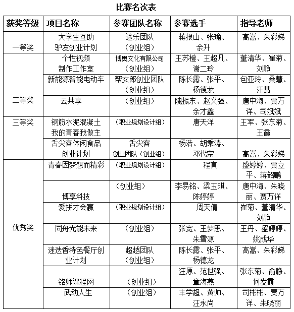 “昆山花桥杯”由省教育厅、省人力资源和社会保障厅、共青团安徽省委办;江苏昆山花桥国际商务城冠名; 省委组织部人才工作处、省教育厅高校学生处、省大中专毕业生就业指导中心、省学生资助管理中心、省人力资源和社会保障厅就业促进处、共青团安徽省委学校部、省职成教学会产教合作委员会、各高校学生处和就业指导中心承办。在历届比赛中,我院均取得了优异的成绩。