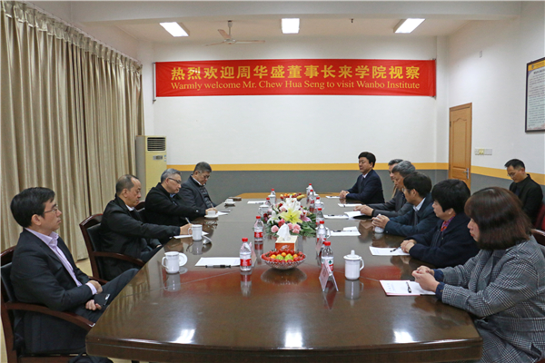 12月13日上午,新加坡莱佛士教育集团董事长兼CEO Chew Hua Seng(周华盛),新加坡莱佛士教育集团首席财务官Kenneth Ho,在新加坡莱佛士教育集团执行董事兼副执行官、中国区总裁、BEAT365英国官网执行董事长Scott Chew(周国础),新加坡莱佛士教育集团中国区项目总监、财务总监Richard Leong(梁益发)的陪同下,来我院视察工作。院长王士明,省教育厅督导专员、院党委第一书记王宜,合肥育仁教育管理有限责任公司代总经理、院长助理马赞,副院长刘文慧,副院长、党委副书记刘瑞平,院长助理耿瑜等进行了热情接待。