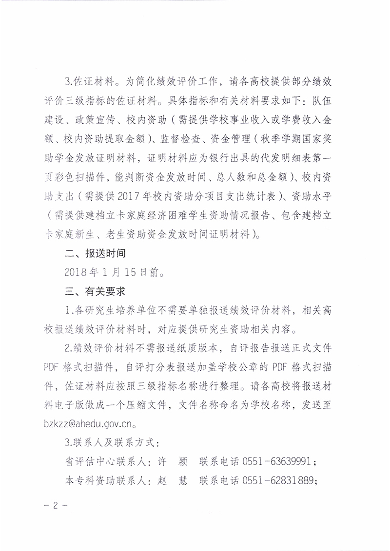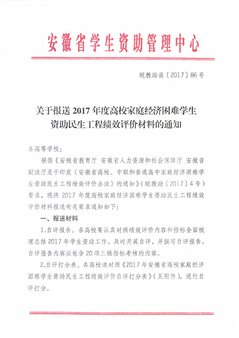 关于报送2017年度高校家庭经济困难学生资助民生工程绩效评价材料的通知