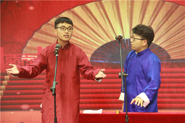 由合肥学院同学带来的大合唱《我喜欢》拉开晚会序幕,整齐划一、温婉流畅的歌声回荡在报告厅的每一个角落。随后,精彩节目轮番上阵,你方唱罢我登场。由安徽审计职业学院同学带来的民族舞蹈《傣女》极具民族特色,赏心悦目,美轮美奂;风趣幽默的相声表演一个比一个精彩,安农大同学带来的相声节目《语言的魅力》以诙谐幽默的演绎告诉我们语言的张力,安徽建筑大学机电学院带来的相声《吹牛》以语不惊人死不休的气势告诫我们吹牛的危害,BEAT365英国官网博云社带来的相声《大学生活好》告诉我们大学生活中虽苦虽累,但更多的却是快乐和成长;由我院同学带来的弹唱《离人愁》,将网红歌曲演绎的出神入化,给观众留下了深刻印象;由合肥幼儿师范高等专科学院带来的古典舞《长安忆》以及我院带来的现代舞《体面》,一静一动,风情迥异却收获相同的精彩;由安徽职业技术学院带来的弹唱《儿时》、中科大同学带来的歌曲《断点》以及安徽医学高等专科学院带来的《胡桃夹子》令观众思绪万千,回味无穷;由安徽建筑大学机电学院带来的小品《子孙满堂》讲述了战火纷飞的年代,家国情怀的感人至深的故事;安徽城市管理职业学院带来的小品《外面的世界》则讲述了当下广大青年追寻梦想中,尽管挫折不断也在坚持最初梦想的情怀。