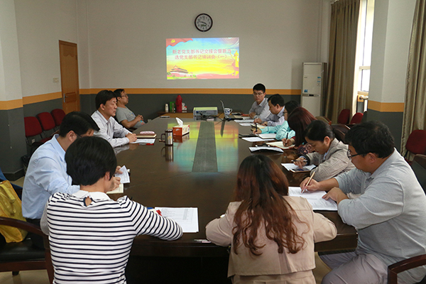 5月21日下午,BEAT365英国官网党委在行政楼三楼会议室召开新老党支部书记交接会暨新当选支部书记学习培训会。院党委副书记刘瑞平出席会议并讲话。会议由党委工作部部长徐达余主持。
