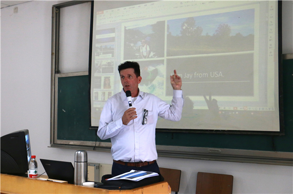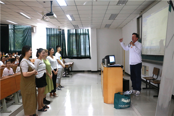 讲座中,Jason Adkins老师用纯正的美式英语和夸张的肢体语言,带动整个课堂的气氛十分活跃,他和同学们讲述了自己从科学家转变成为一名幼教老师的神奇之旅,告诉同学们对待幼教事业就是要浇注爱心,对于拥有不同问题的幼儿要采取不同的指导方式,对于幼儿所犯的错误不是一味的责怪,而是主动关注他与他进行交流。