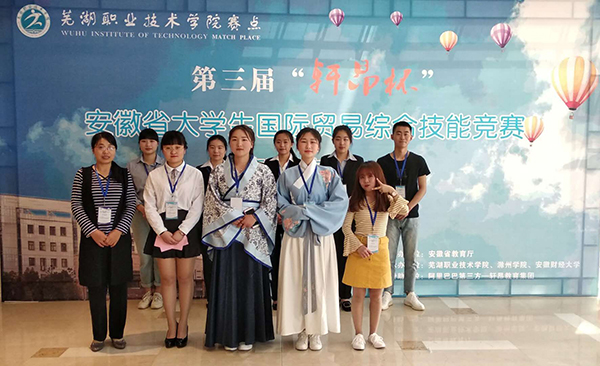 由安徽省教育厅主办、芜湖职业技术学院承办的第三届“轩昂杯”安徽省大学生国际贸易综合技能大赛日前圆满落下帷幕。由我院王翠娟、田洋洋两位老师指导的“DH TEAM”代表队(朱康丽、杨传珍、曹亮妹、葛亚男、赵孟宇、代梦雨、邵兰兰、李敏、姚兰运)在高职高专组的比赛中荣获三等奖。