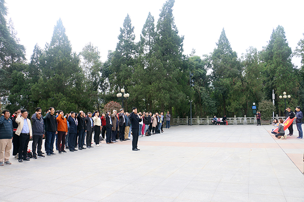 上午10点,全体党员到达红军广场,踏着饱含深刻寓意的台阶,拾级而上至烈士陵园。同志们怀着无比崇敬的心情瞻仰了镌刻着刘伯承元帅题写的“燎原星火”四个金色大字的革命烈士纪念碑,敬献了花篮,并列队向革命先烈们三鞠躬,表达了对革命先烈们的崇高敬意和无限哀思。随后,在革命烈士纪念碑前,全体党员高举右拳,面向鲜艳的党旗庄严宣誓,在院党委副书记刘瑞平的带领下重温了入党誓词,使每位党员同志受到了一次深刻的党性教育,更加牢记入党初衷和使命。