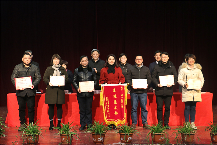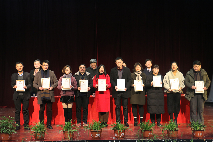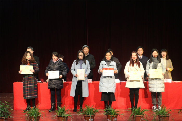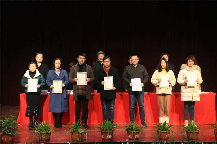 过去的一年,学院在党务工作、教育教学、就业创业、技能比赛、后勤保障等各个方面取得了一系列成绩,涌现了一批成绩突出的先进个人和集体。会上,刘瑞平宣读了2018年安徽省职业院校技能大赛等教学系统12个获奖项目名单;刘文慧宣读了第四届安徽省“互联网+”大学生创新创业大赛等就业系统3个获奖项目名单;王宜宣读了合肥市教育系统“优秀共产党员”等党务系统4个获奖项目名单;王士明宣读了年度绩效考评成绩突出的专职教师等4项获奖教职工名单。随后学院领导为获奖集体和个人分别颁发锦旗和荣誉证书。