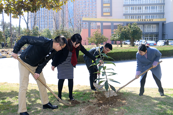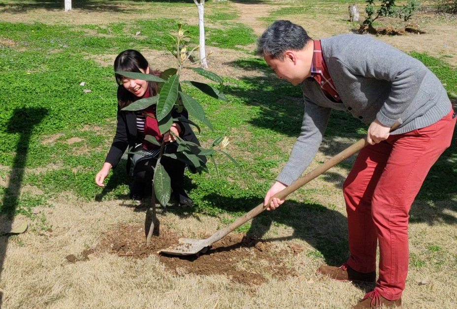 阳春三月,草长莺飞。值我国第41个植树节,行政党支部在校园内举行了义务植树活动,以植树造林为活动载体,增强师生的绿色环保意识,共同守护绿色家园,点亮绿色文明健康生活,为创建生态万博贡献一份力量。