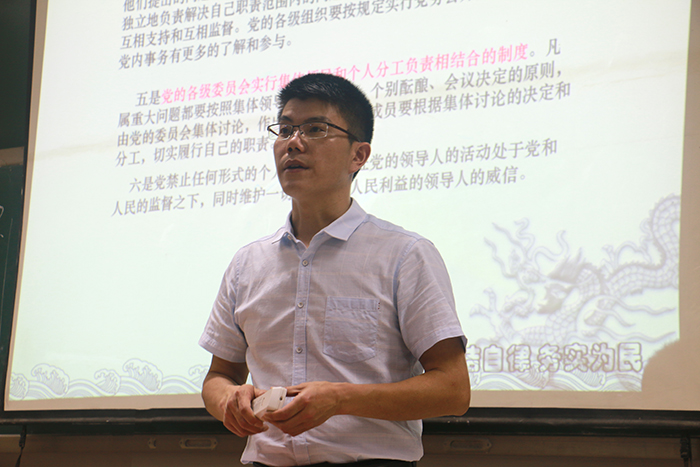 课上,沈春雷重点讲解了中国共产党的历史和全面深化党的建设水平等内容,并从入党动机、用何种思想武装头脑、如何做一名合格的共产党员等方面为全体学员讲授了党的相关知识、相关制度和理论。
