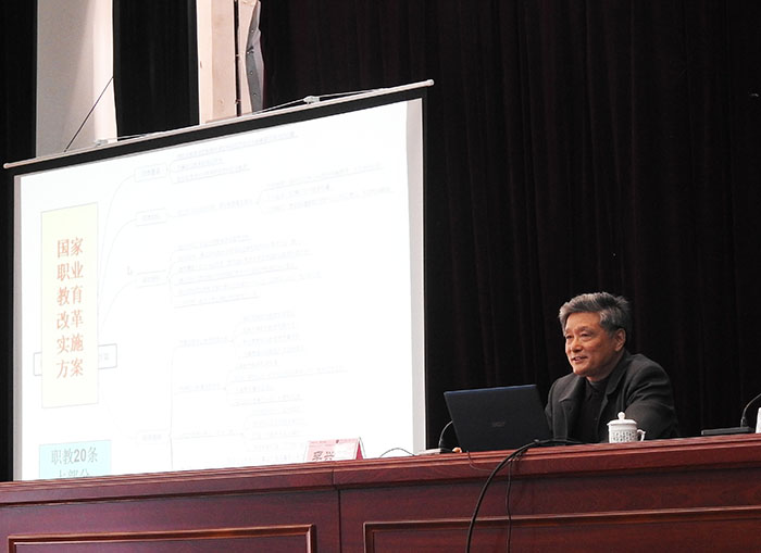 报告会上,李兴旺教授从职教改革实施方案内容与精神、现代职业教育基本特征与要求、新时代职业教育的改革与创新、职业教育与行业企业融合与合作四个方面,阐述了在新时代、新国策背景下,职业教育改革的总目标、基本要求与具体实施方案。