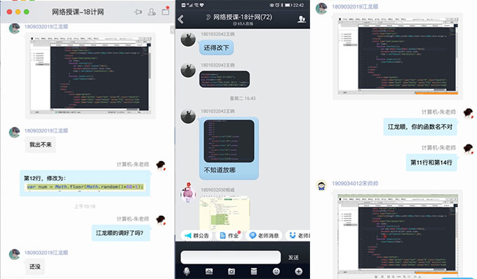 教师在语音直播授课的同时,通过QQ群与学生互动交流、提问,及时了解学生对所授知识掌握情况和实践操作中的问题所在。并鼓励没有电脑的同学克服困难,通过书写代码做好手写笔记,努力完成每一项教学任务。