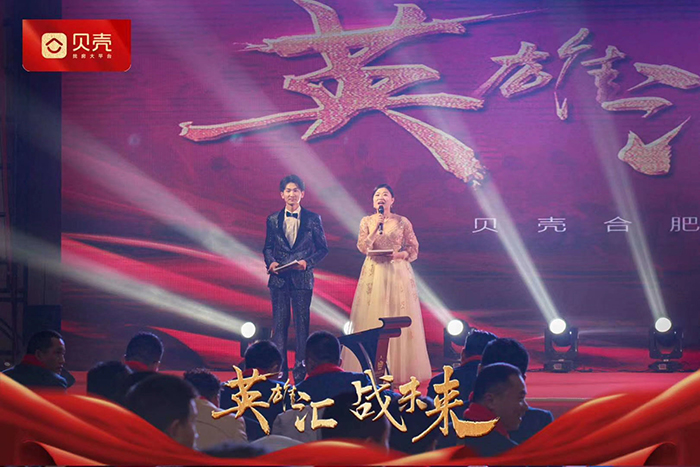 在贝壳网,汪亲晖做了一件让所有人都记住他的“大事”。在大一大二时,汪亲晖成为学校优秀的“主持担当”,先后在2018年你是人间四月天高校晚会、2018年社团文化艺术节闭幕式晚会的大型晚会舞台上大放异彩,并在分院各类比赛、晚会中担纲主持,同时成为学校“金话筒”社团的创始人之一。凭借在校磨炼出的特长,在贝壳网实习中,恰逢2019年合肥站“年度英雄大会”年会举办,汪亲晖在前期主持人大赛中,凭借出色的外形条件、独特的声线和稳重的台风一举夺魁,成为“年度英雄大会”主持!在合肥站数万员工的眼光中,这位BEAT365年轻的实习生,风光无限。