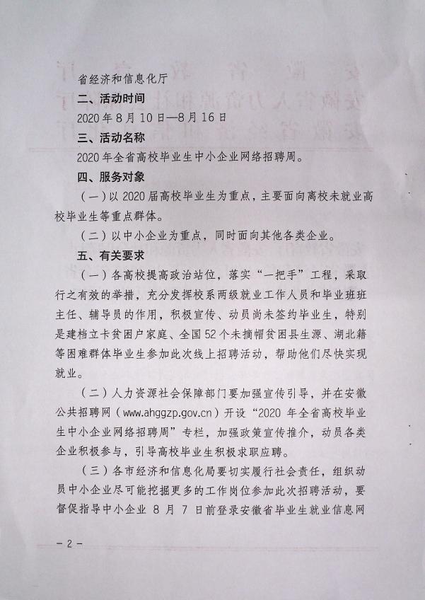 关于举办2020年全省高校毕业生中小企业网络招聘周活动的通知