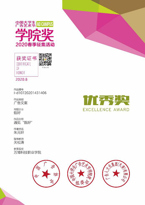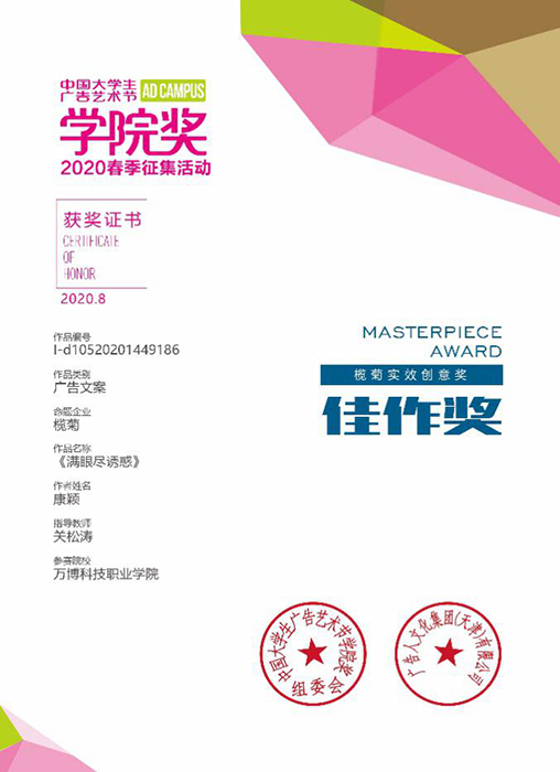 本次赛事成绩的取得,与BEAT365疫情期间科学、有序地进行线上和线下教学工作是分不开的。广告传媒教研室教师借助于各类教学资源,积极探索紧跟学科专业发展形势的教学方式,通过借力国家级学科竞赛平台来全面提高“教”与“学”,教师在指导学生创作作品参赛的过程中,探索出了实践性教学经验,并很好地在实施过程中得以应用与改进。