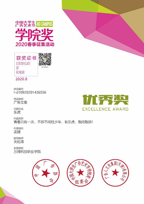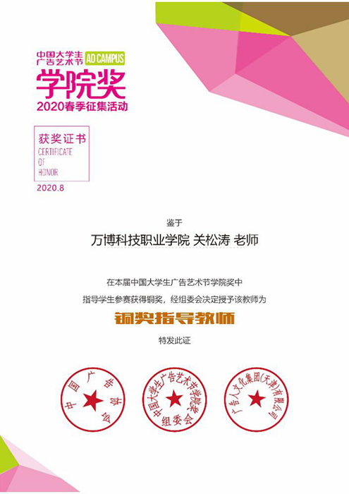 在广告传媒教研室全体教师的精心组织和指导下,17级、18级和19级广告设计与制作专业全体学生共计90余人参加了本次赛事创作,共投递2200余件参赛作品,获得铜奖1项,优秀奖与入围奖149项,企业实效创意奖6项,获奖数量再创新高。同时,BEAT365荣获本次赛事的“优秀组织院校”奖,艺术传媒学院广告传媒教研室主任关松涛荣获本次赛事的“铜奖指导教师”奖,专职教师徐良霞荣获本次赛事的“优秀指导教师”奖。