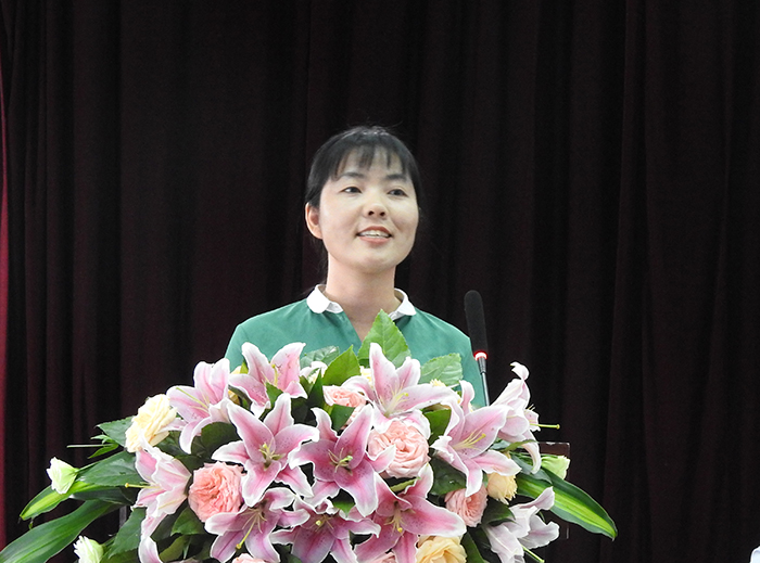 校基础部教师张书华作为优秀教师代表在会上发言。她讲述了在工作中的成长与成绩,并表示,教师代表着一份责任,也代表着一个使命,作为教师,不论获得了什么荣誉,最开心的还是获得学生的尊敬与爱戴,教师要在自身业务能力的要求上永不满足,永不停步。