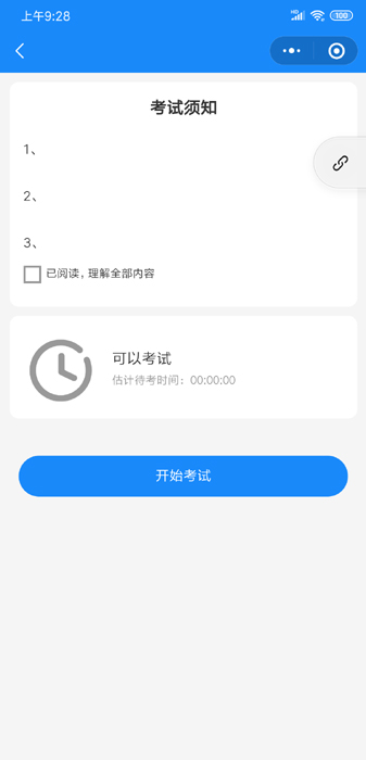 考试方式为笔试的话,考生签到后系统自动分配考试资源,如果签到考生超出系统设置的人数时,新进入的考生将要进行排队候考,候考页面中有提示候考时间和排队人数,请考生根据实际排队长度合理安排考试时间,如果退出后重新进入候考页面时,需要重新排队!