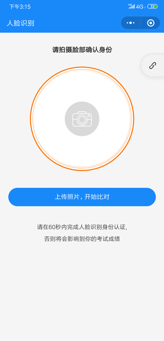 考生在候考页面中排到了考试,页面上显示可以考试时,点击“开始考试”即可进入考试页面,在考试开始前,系统要求考生必须进行人脸识别身份验证,按照系统提示操作即可,考试的试卷题目为随机抽取,请认真作答,考试结束后点击“交卷”也必须要再做一次人脸识别身份验证,按照系统提示操作即可;