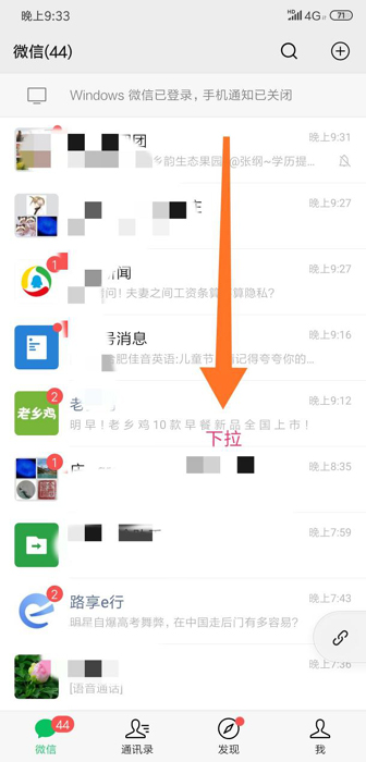 考生在考试过程因某种原因意外跳出了小程序(未退出登录状态或卸载了小程序),请在微信中的“微信”页面下拉,找到刚才进入的考试小程序图标,点击图标重新进入,即可回到考试页面;