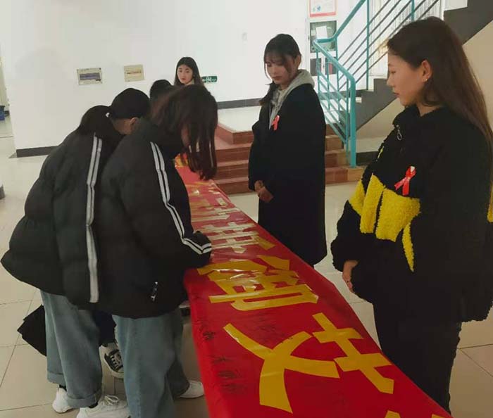 在预防艾滋病宣传周期间,校学生社团联合会开展多个校园活动:一是以预防艾滋病宣传横幅签字、以进班宣传等方式开展“预防艾滋,我是行动者”为主题的校园宣传活动;二是开展以“如何预防艾滋病”为主题开展宣传讲座;三是组织学生观看预防艾滋病题材的微电影;四是开展了“携手防疫抗艾,共担健康责任”为主题的趣味运动会。