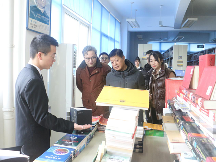 在各二级学院的图书展位前,校领导认真听取了图书讲解员的讲解,并不时对同学们设计的具有创意性和独特性的书籍造型,投以赞许的目光。校领导还仔细翻阅了有关书籍,耐心询问各类图书的库存情况、借阅情况以及师生反映情况等。
